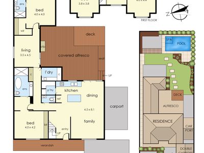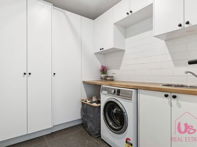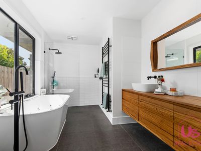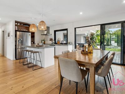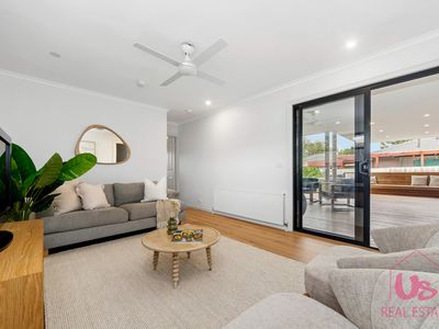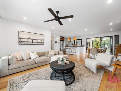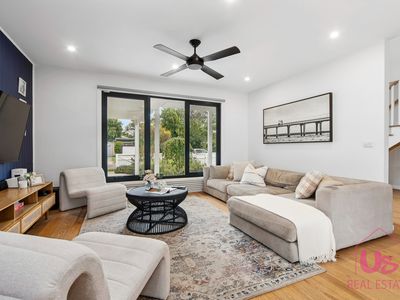 Set on a generous 780m² block, the home features five generous bedrooms including two with full en-suites, ideal for the in-laws or long-term guests, a powder room downstairs and a main bathroom upstairs. The well-designed floor plan provides two separate living zones, including a spacious open-plan living and dining area downstairs centred around a modern galley kitchen, plus two additional living areas upstairs.