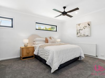 Additional features include remote electric front gates, hydronic heating, split system A/C's both up stairs and down, 10 kW solar system, built-in robes to all bedrooms, a double carport and secure off-street parking for a caravan, boat or trailer behind a fully fenced front yard.