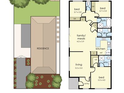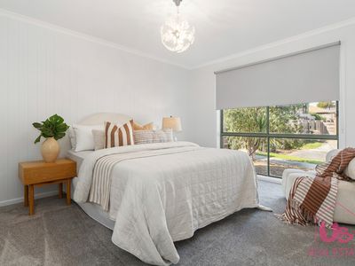 The thoughtfully designed floorplan places the master bedroom privately at one end of the home, complete with a well-sized ensuite and walk-in robe. Two additional bedrooms, ideal for children or guests, are serviced by a central bathroom and separate toilet, ensuring functionality for growing families.